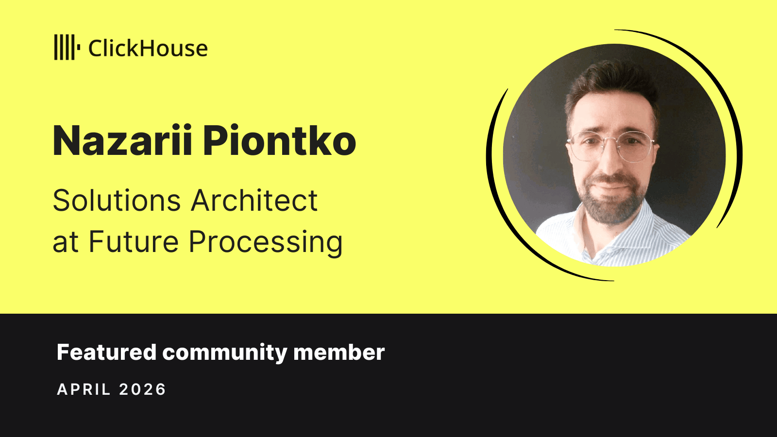 Nazarii contributed two features to ClickHouse 26.3 LTS: the naturalSortKey function, which enables intuitive sorting of strings containing numbers (so "file10" sorts after "file9", not "file1"), and support for the ALP compression codec, which brings efficient lossless compression for floating-point data.