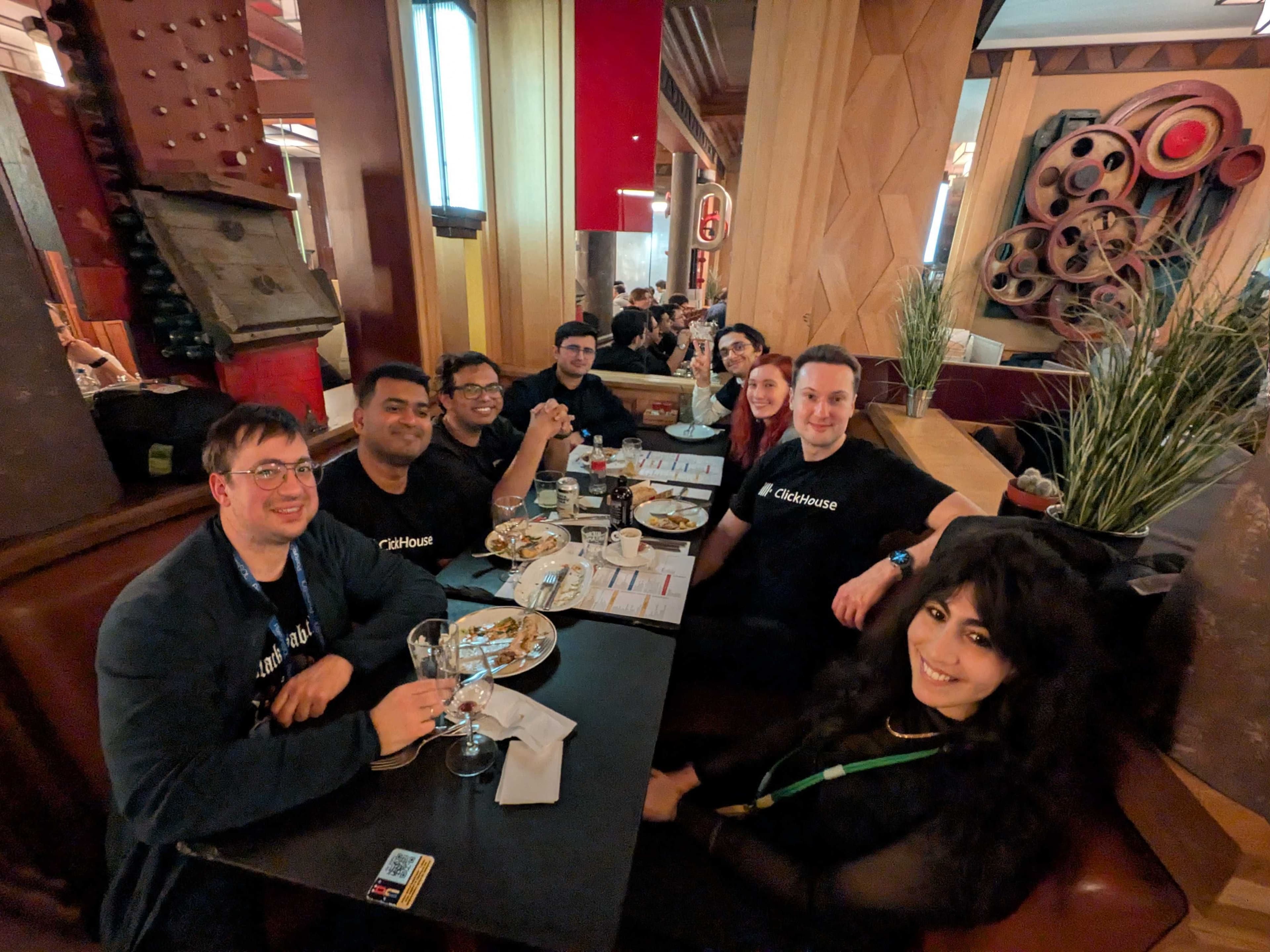 The weekend kicked off with the ClickHouse community dinner at L'Ultime Atome in Ixelles, Brussels. 106 people joined us for dinner, drinks, and some of the best conversations of the conference. ClickHouse founder Alexey was there to chat and answer questions. Thanks to everyone who came out; it was a fantastic evening (some pictures are at the end of this post).