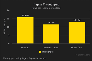 A forthcoming engineering focused blog will cover how this is implemented in ClickHouse's columnar architecture in more detail, as well as provide benchmark results vs previous techniques used in ClickHouse as well as other more traditional search engines.