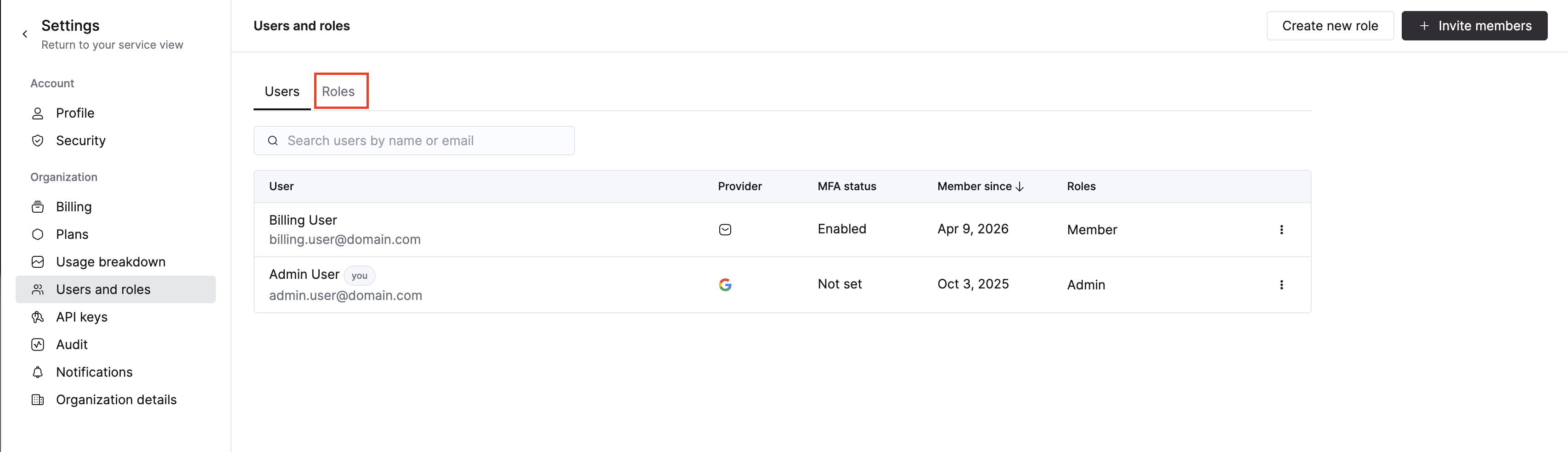 Users and rolesを選択します Rolesタブを選択します- 更新するロールの横にある 3 点メニューを選択します