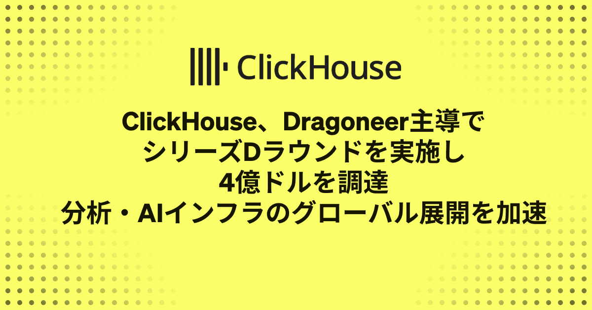 ClickHouse、Dragoneer主導でシリーズDにて4億ドルを調達、分析・AIインフラのグローバル展開を加速(抄訳版)