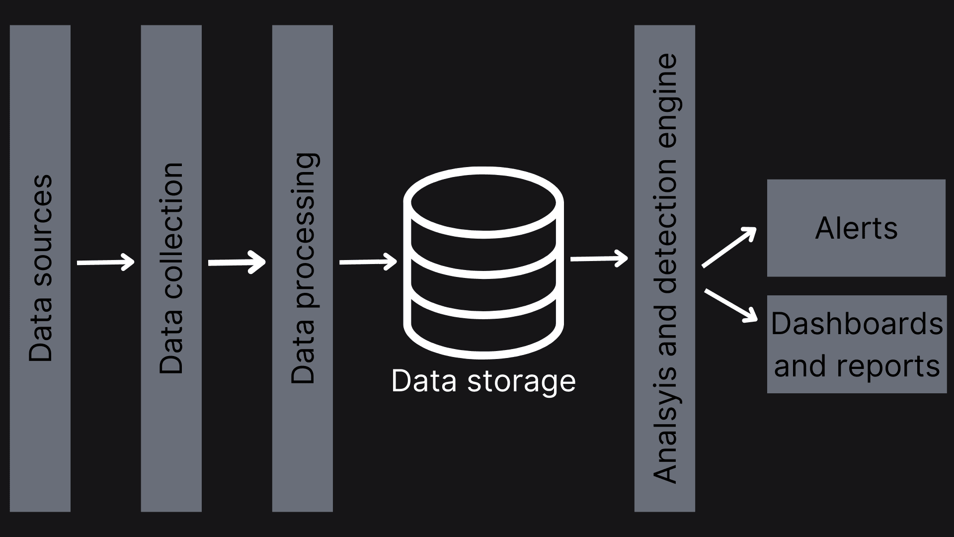 This includes security-relevant information from firewalls, cloud infrastructure, and identity providers, as well as logs from security devices, applications, and system events. This centralization makes maintaining a comprehensive view of an organization's security posture possible.